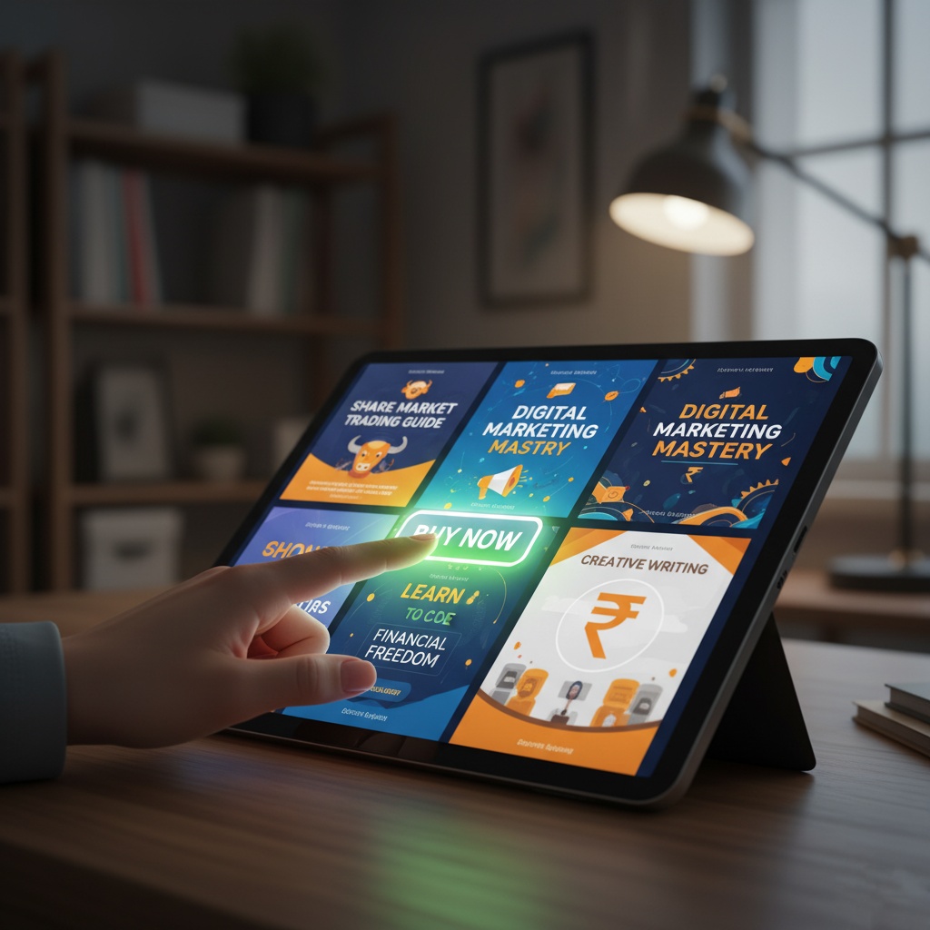 यदि आप किसी विषय के विशेषज्ञ हैं (जैसे शेयर बाजार ट्रेडिंग या डिजिटल मार्केटिंग), तो आप अपना ज्ञान एक संरचित ऑनलाइन कोर्स या ई-बुक के रूप में बेच सकते हैं।